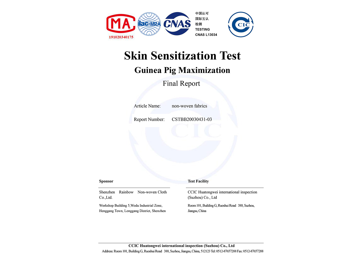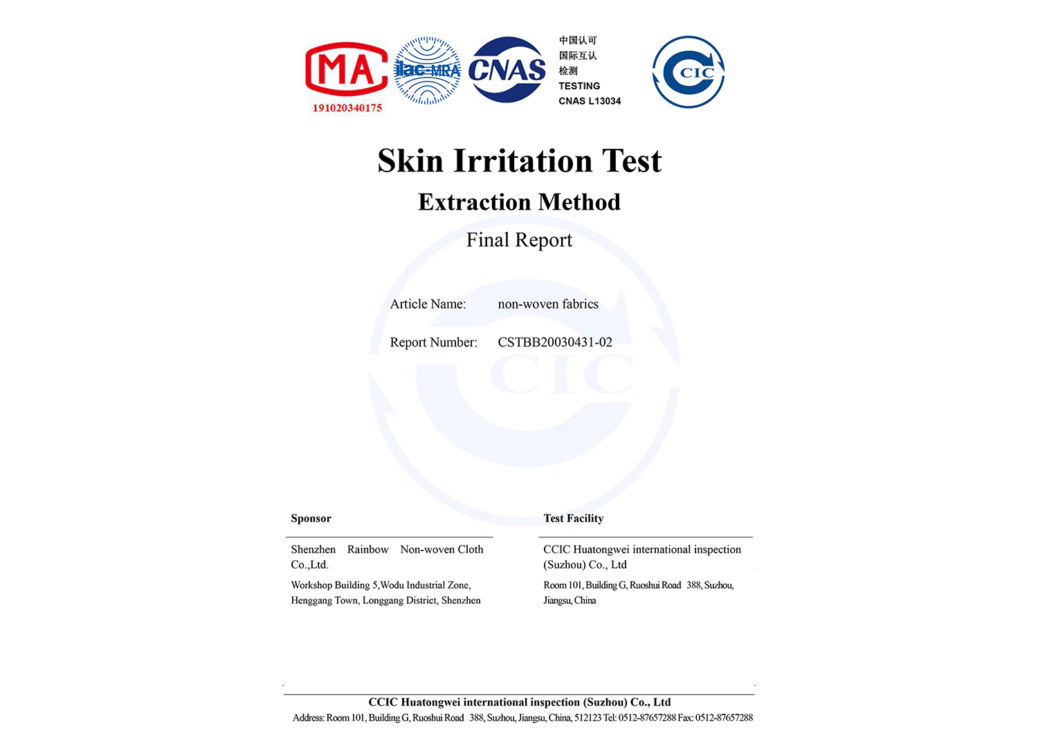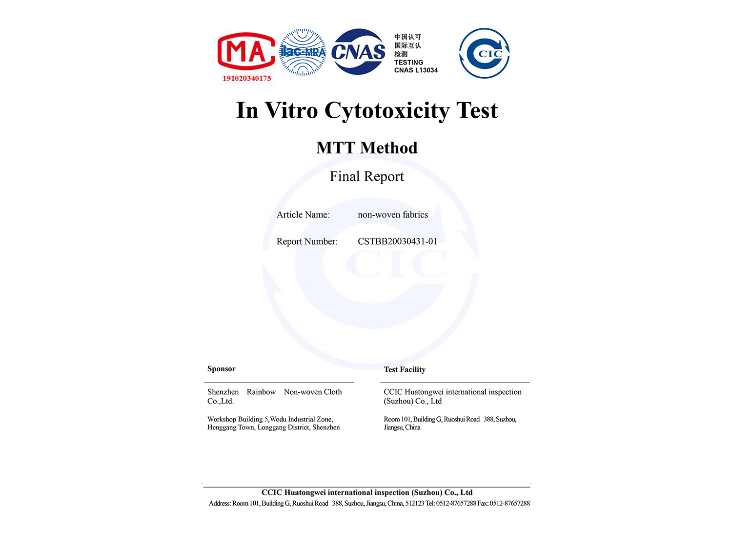 © 2020 Shenzhen Rainbow Nonwoven Co., Ltd.